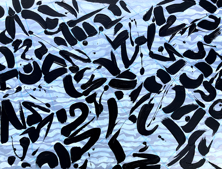 Rev, 2018, Oil, Acrylic and Marker on Canvas, 40cm x 40cm